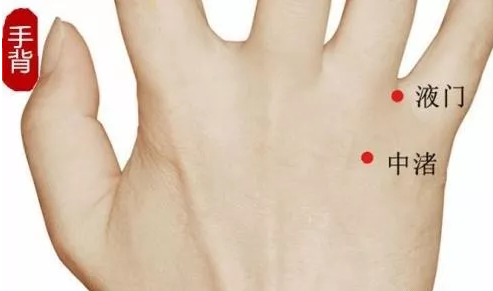 尤其是无名指与小指间的骨缝,叫「中渚」穴。理气宽中,排浊去湿。相当于「木香顺气丸」