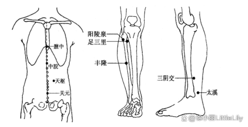 手持纯艾条温和灸关元 、足三里(单)、三阴交(单)、合谷(单)各 30 分钟。