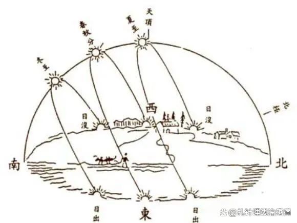 众所周知,冬至这天,太阳几乎直射南回归线(南纬23°26’)。这一天北半球得到的阳光最少,北半球各地的阳气达到一年中的最低点。冬至过后,太阳直射点又慢慢地向北回归线转移。